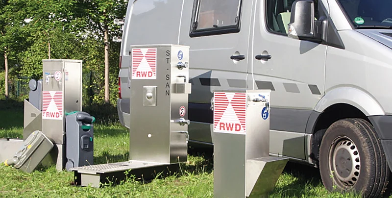 RWD: Die Anlagen von RWD sind Ergebnis des direkten Marktkontaktes. So ist die bewährte Anlage ST-SAN nun auch mit verlängerter Bodengruppe beziehbar. Bei den Stromsäulen sind immer mehr Anfragen mit verbrauchsabhängiger Abrechnung zu verzeichnen. RWD hat allein dafür mehrere Lösungen im Programm. Ich freue mich besonders darüber, in den nächsten Wochen die ersten Praxislösungen für eine einfachere, und vor allen Dingen saubere und geruchsfreiere, Entsorgung von Inhalten aus Toilettenkassetten vorstellen zu können. Bei der Entwicklung haben wir eng mit der AUCOTEAM GmbH zusammengearbeitet.